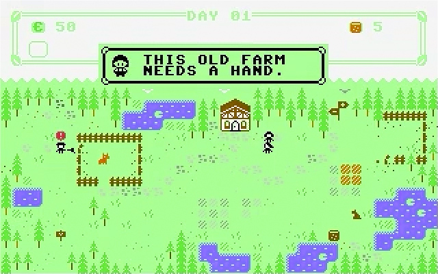 Can you help Mia and her uncle to save her farm and restore it to old glory? Tiny Harvest lets you grow crops, fulfill quests, buy cows and chickens, bake a cake and befriend a dog. What else would you want? Oh yes: a Commodore 64 to play the game on.